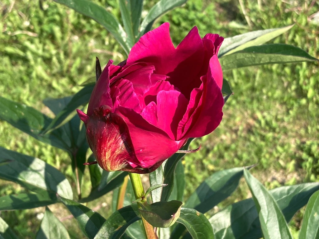 Kansas, una peonía muy popular, es una hermosa peonía doble, de color rojo sandía. Su flor, en forma de rosa, es de colores brillantes y no se marchita con el tiempo. Su follaje oscuro contrasta marcadamente con esta magnífica flor, que se alza sobre tallos fuertes y robustos. Tiene un aroma agradable, ligero y dulce.