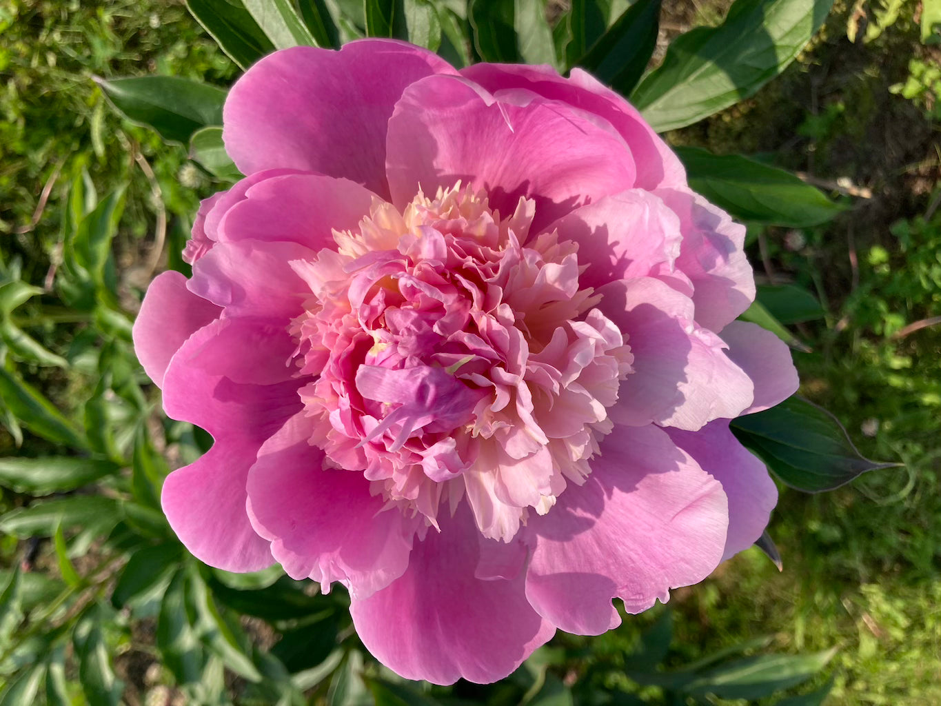 Una peonía rosa realmente hermosa, con capullos relativamente pequeños que se transforman en enormes flores de 23 cm. Los delicados pétalos interiores tienen un brillo plateado en las puntas como detalle. Es conocida por su deliciosa fragancia. La peonía crece en tallos medianos, no muy fuertes, con un follaje complementario de color verde claro.